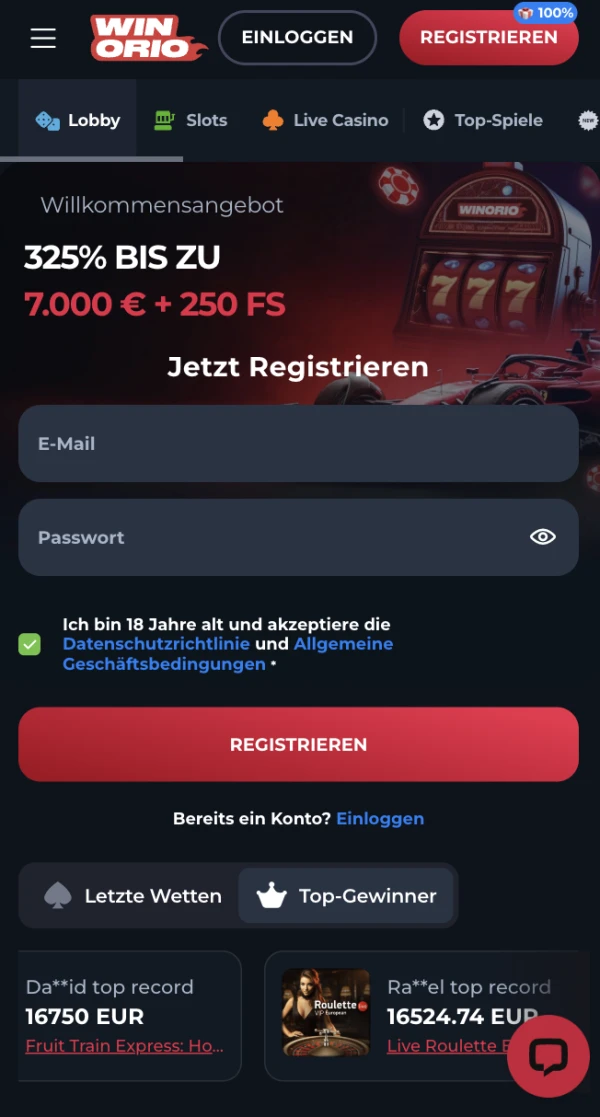 Spelers kunnen ook verwijzingen naar WinorioCasino zien tijdens loyaliteits- of VIP-communicatie. Ons loyaliteitsprogramma met race-thema en 25 levels schrijft je automatisch in en geeft 1 punt per €10 inzet, terwijl ons VIP-programma voordelen in meerdere tiers en hogere opnamelimieten biedt voor in aanmerking komende leden. Voor doorlopende mobiele aanbiedingen kun je uitkijken naar Weekend Discount reloadbonussen en Loyalty Cashback die tot 12,5% kan oplopen vanaf Level 21.